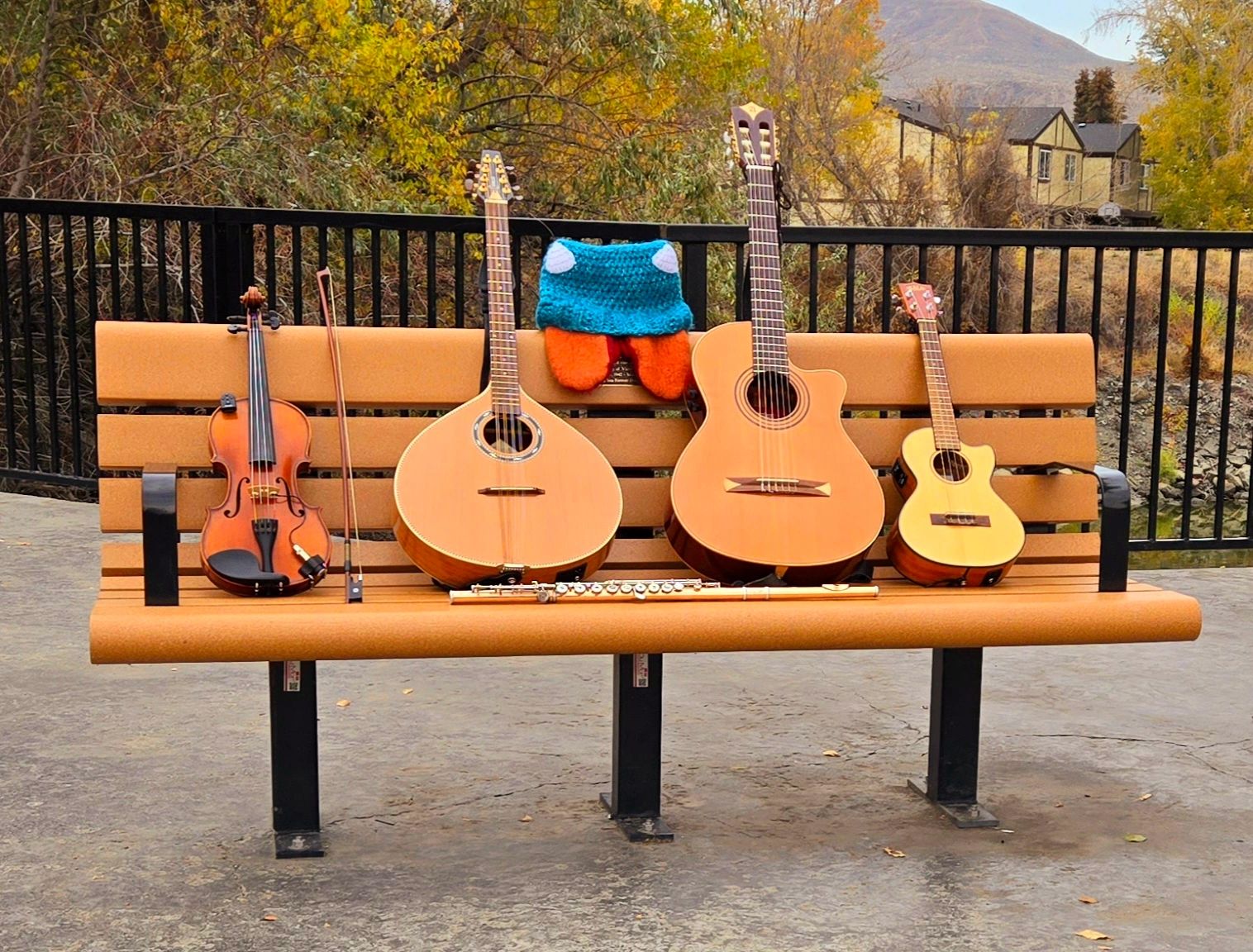 Julia sings and plays violin, bouzouki, and guitar. I play mostly guitar & ukulele and sing backup, while Bailey plays flute and sings backup.